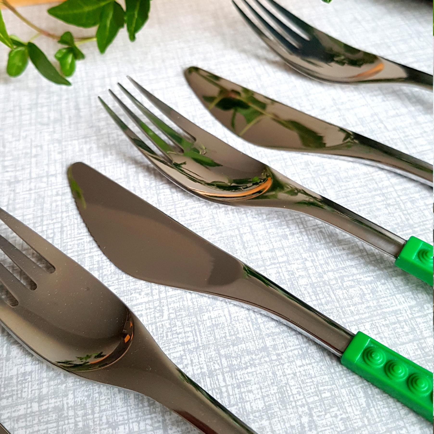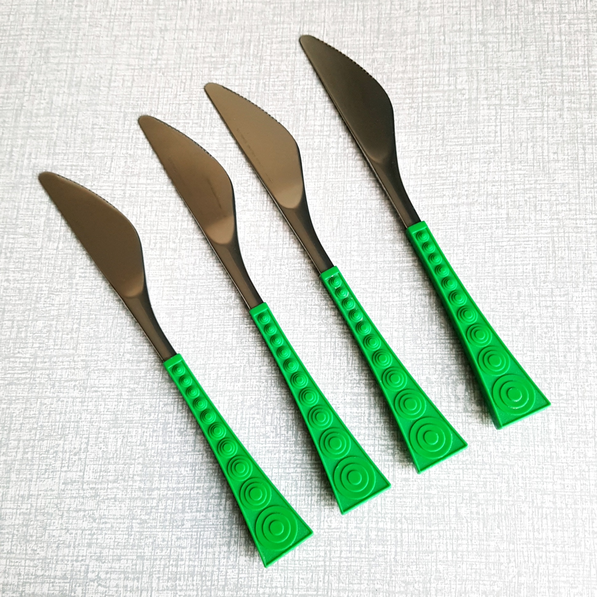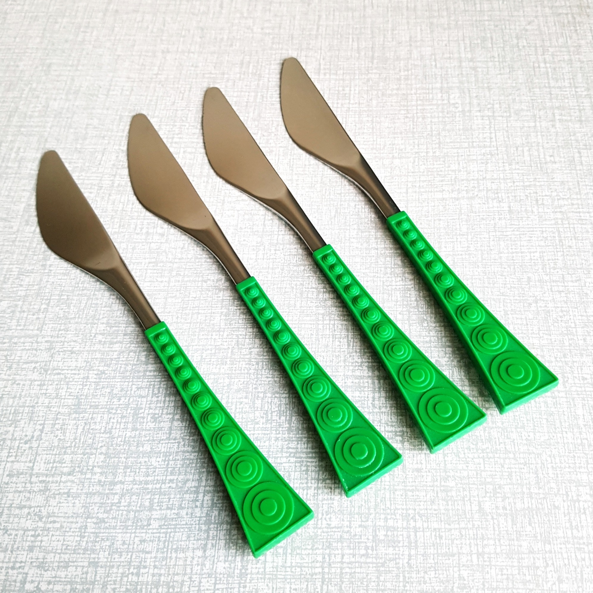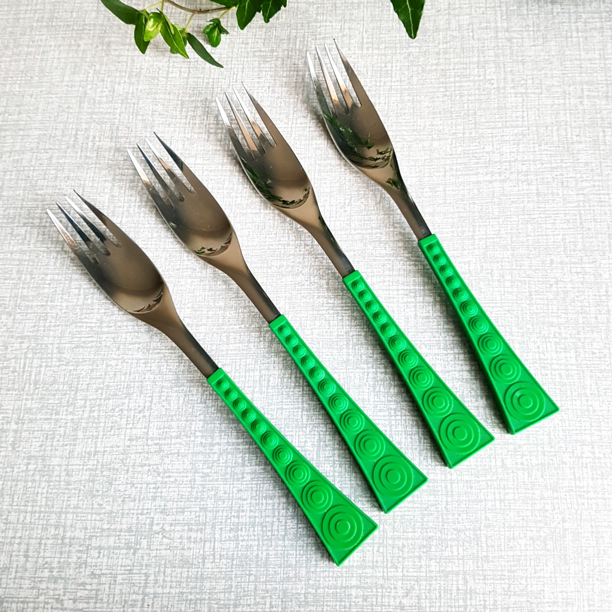 Underbara bestick ~ Colorina ~ med skaft i grönt, formgivna av Nanny Still för Hackman, Finland.