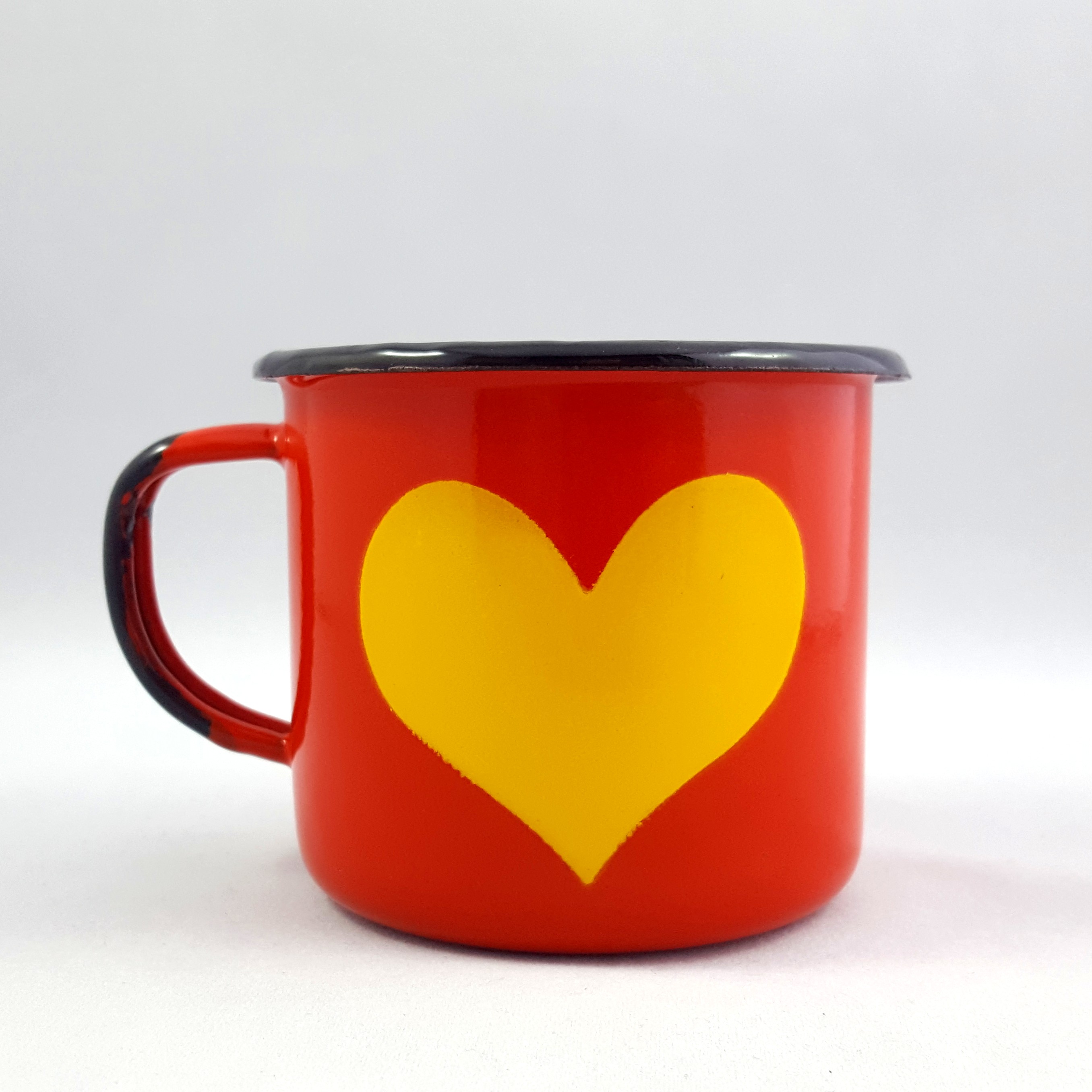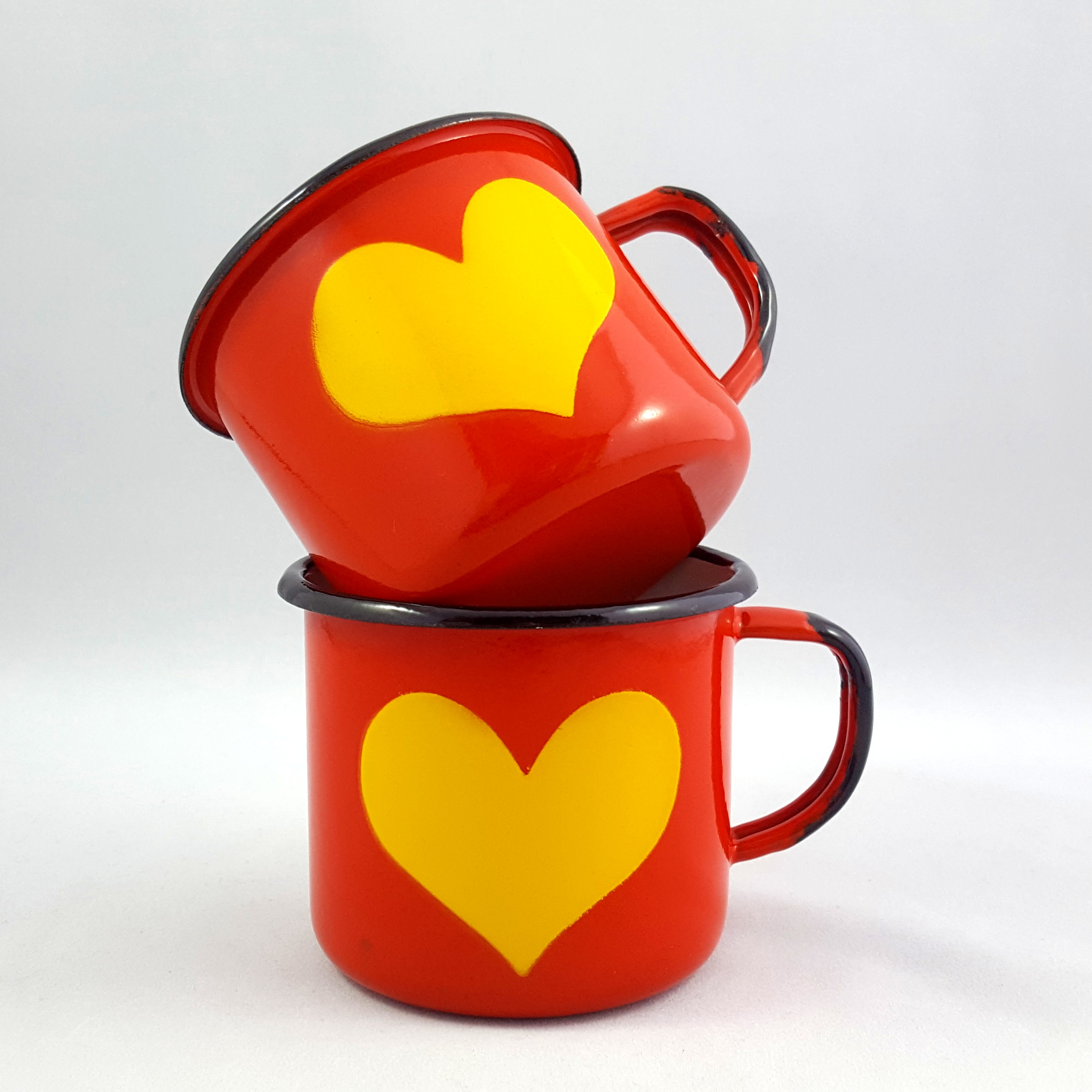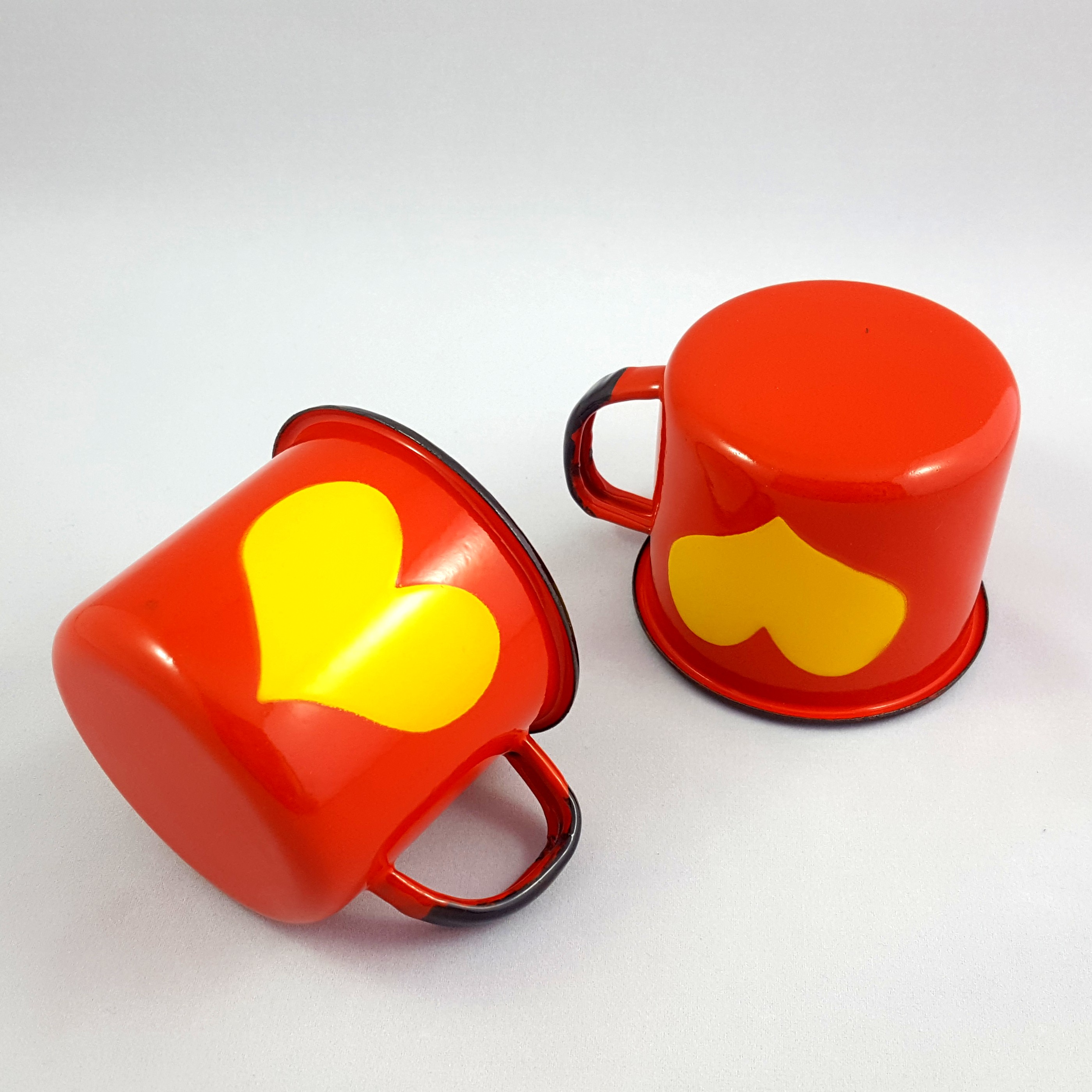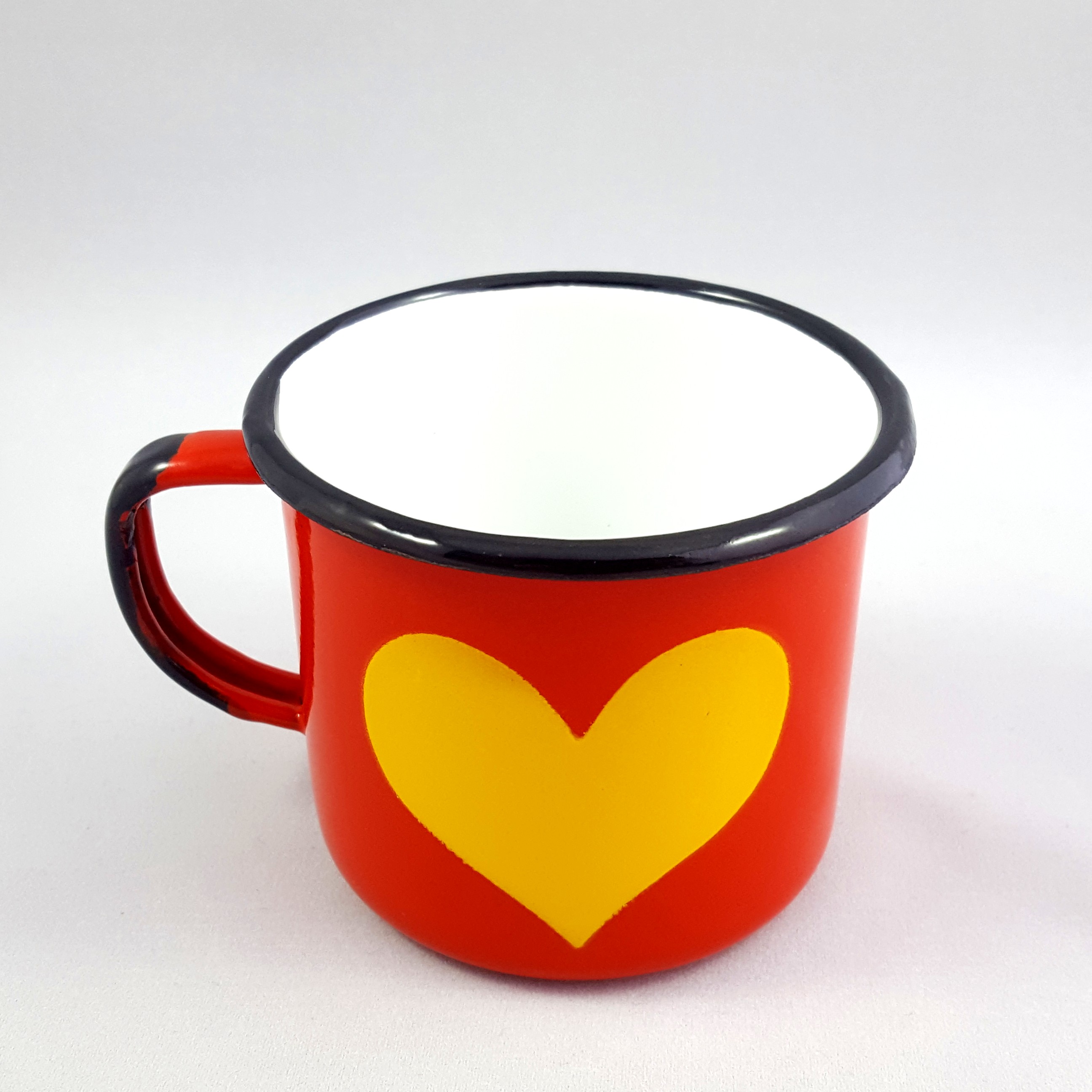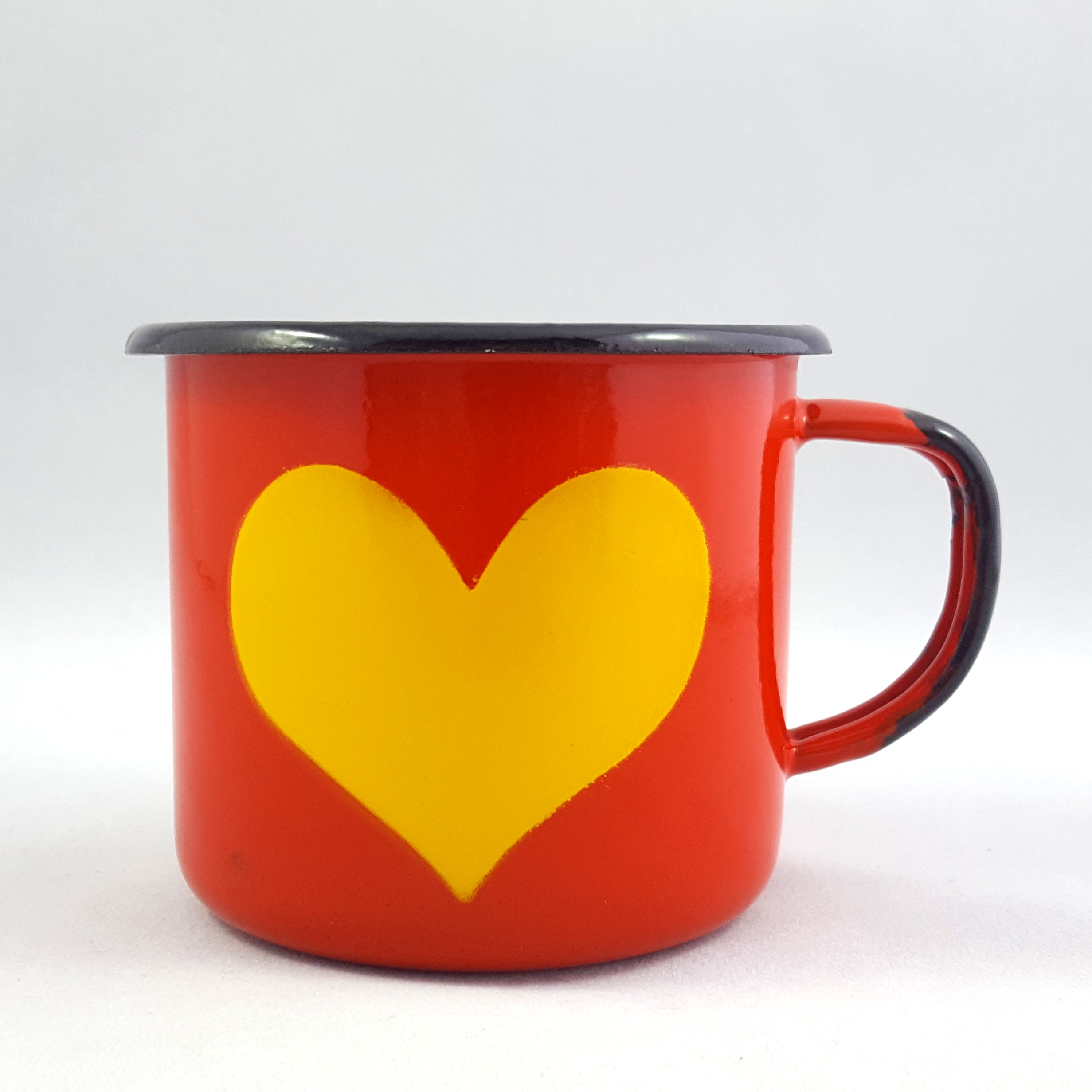 Emaljmugg – Röd & Gul – Hjärta – Retro