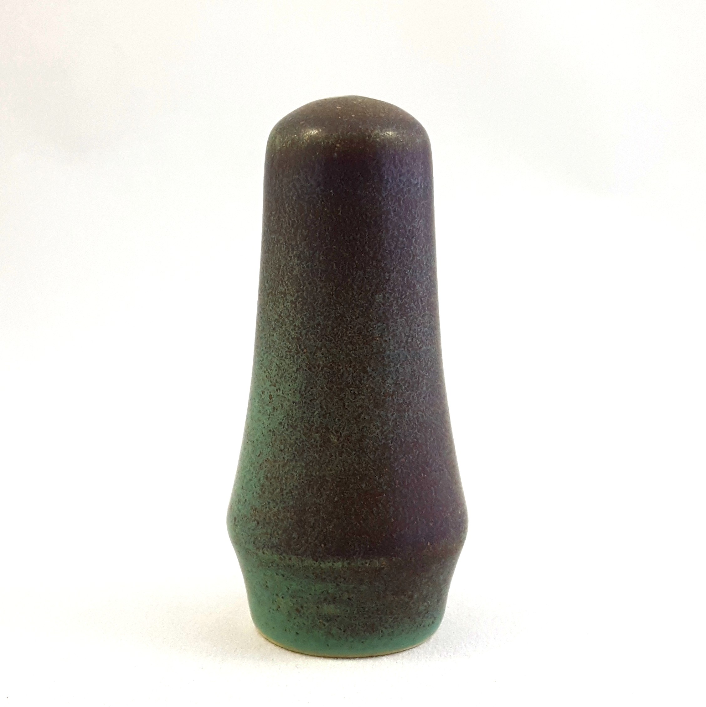 Salt-och pepparkar i blågrön spräcklig glaserad stengods från 50-talet.