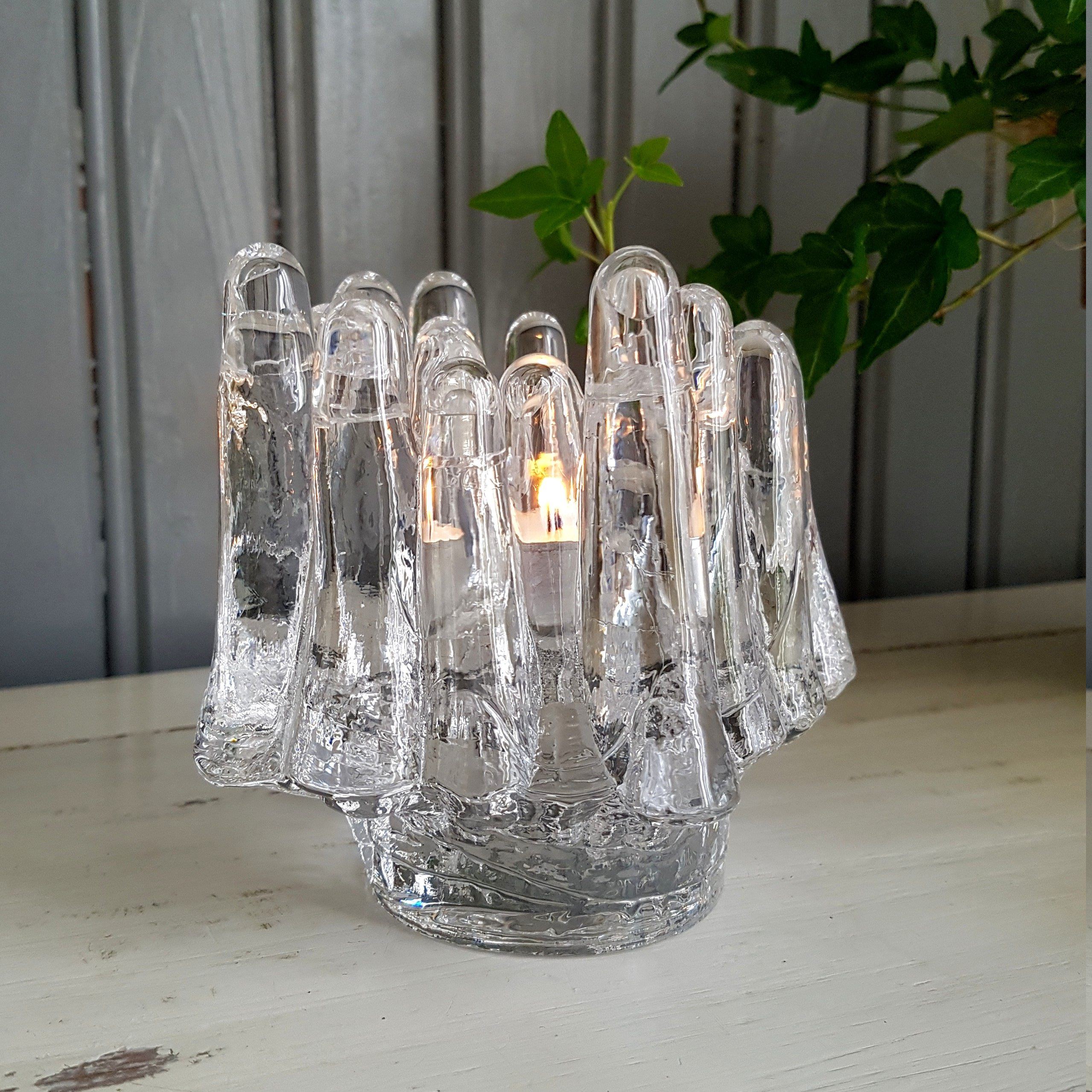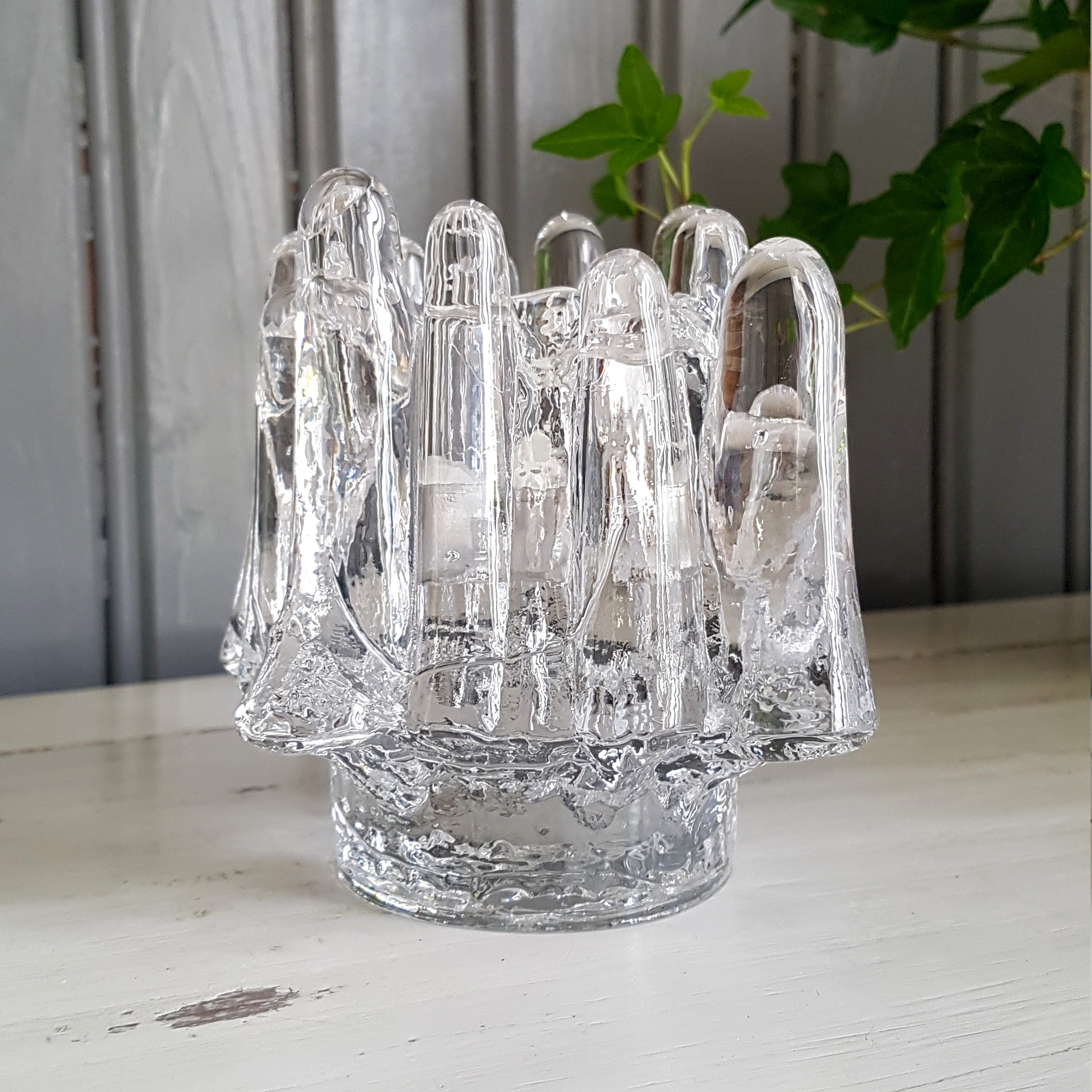 En vacker och ikonisk ljuslykta ~ Polar ~ i klart glas från Kosta Boda ~ 1970-talet.