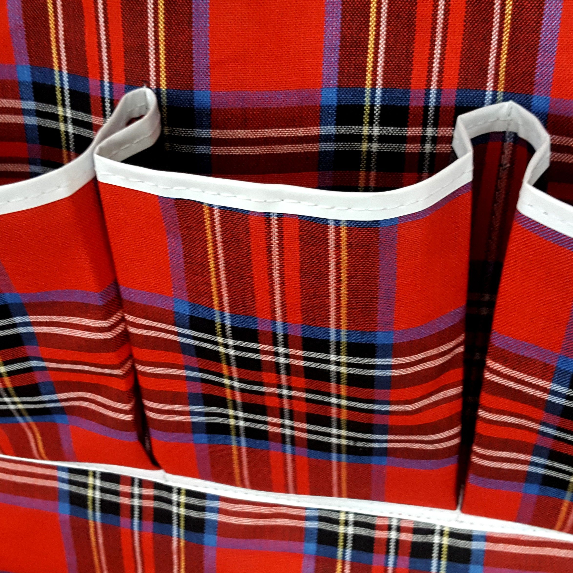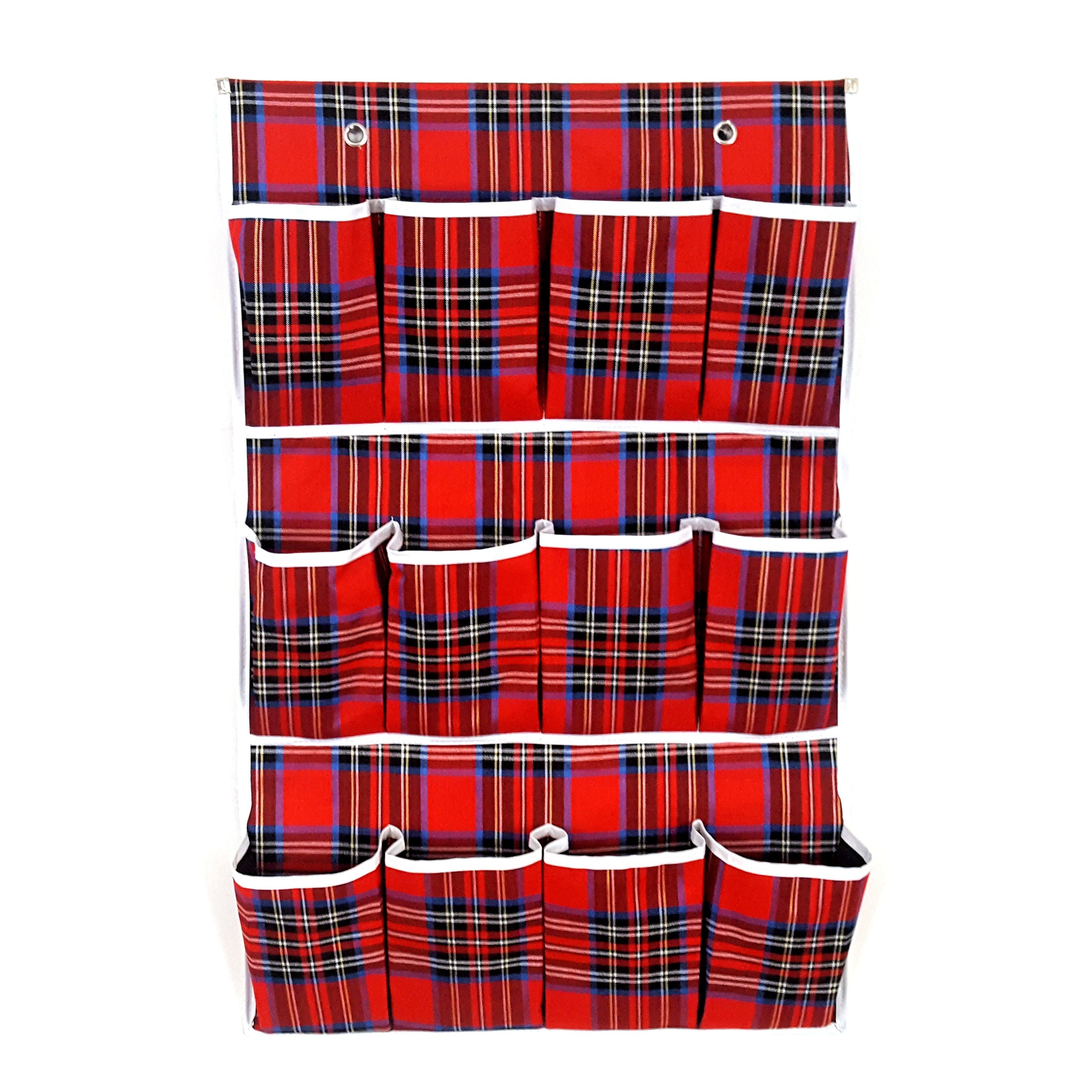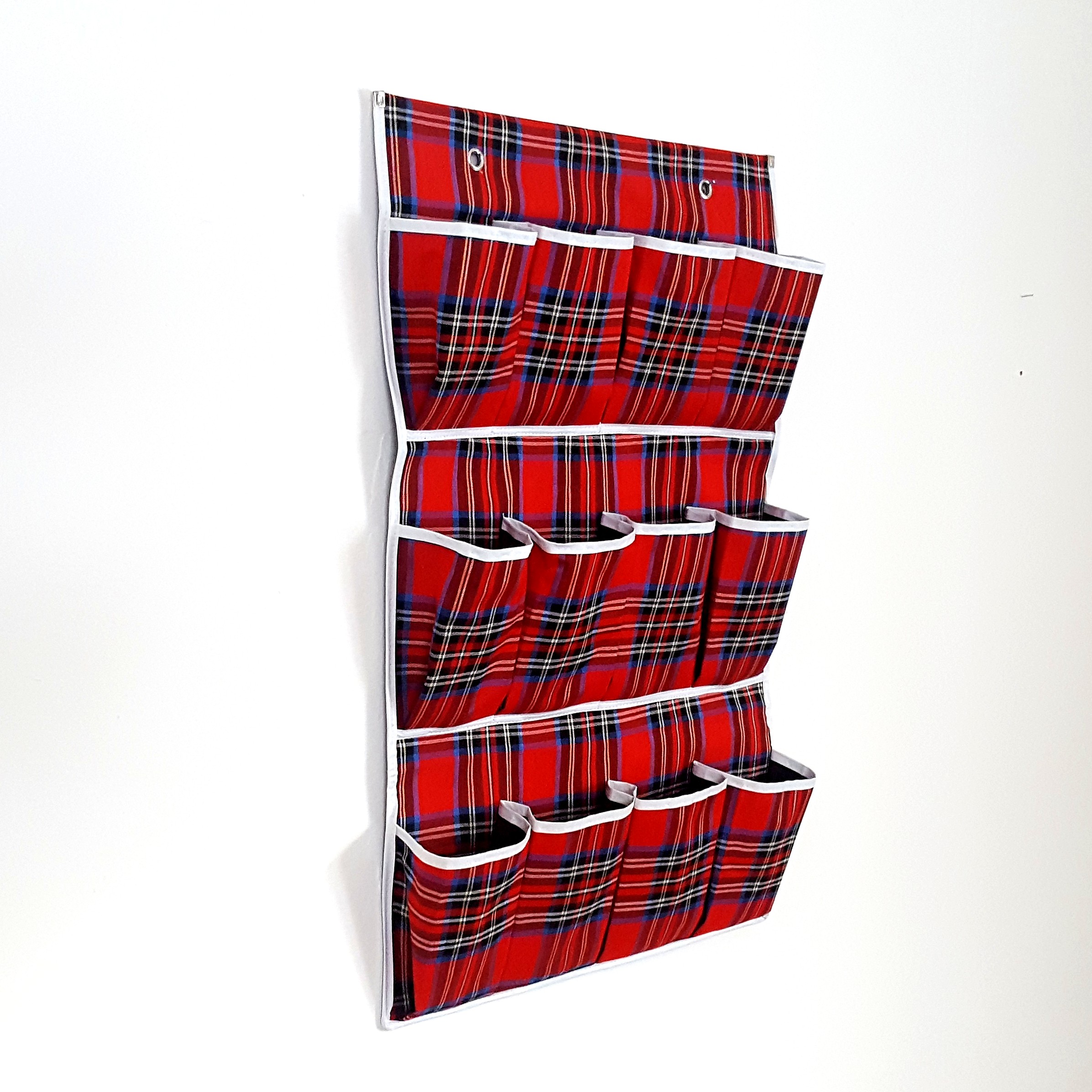 Vägghängd förvaring – 12-fack – med tartan mönster i kanvas och gummerad baksidan.